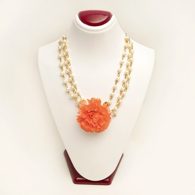 Floral neckpiece handcrafted with peach silk flower with a touch of delicate pearls