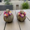 Floral anklets made of purple, pink and yellow silk flowers. These anklets are adjustable . These are made of dry flowers and can be reused.
